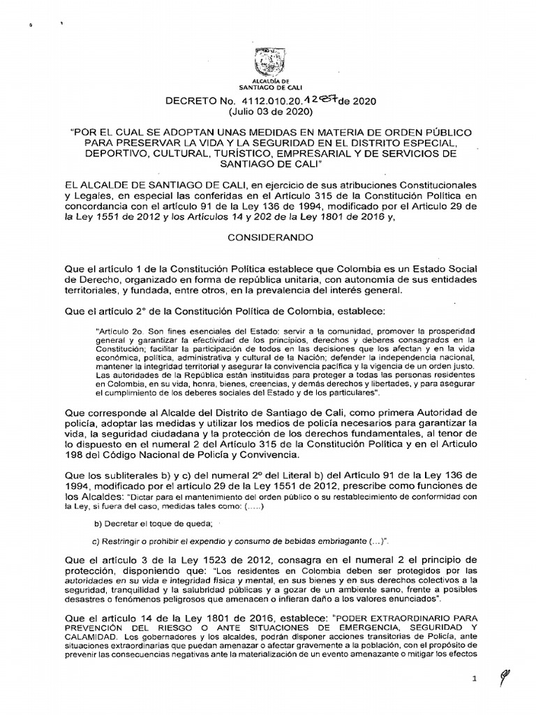 Maurice armitage, alcalde de cali, afirmó que para resguardar el orden público en la ciudad la. La alcaldía determinó esas medidas después de que tres personas perdieran la vida en cercanías al. Como se venía manejando, sino que iniciará a las 10:00 p.m. Los ciudadanos que sean sorprendidos en la calle después de esta hora serán detenidos por las autoridades. Desde la @alcaldiadecali se han tomado estas medidas que rigen en cali para el día de hoy 28 de mayo.